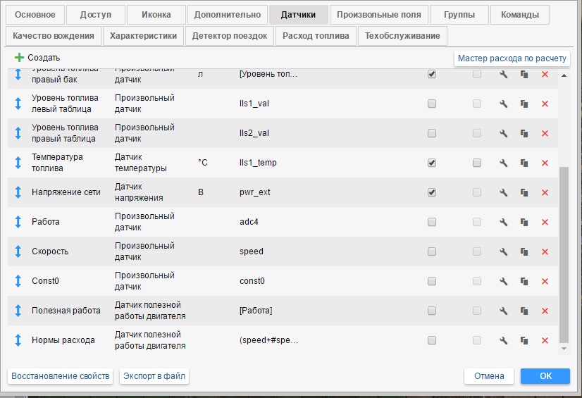 Новый мастер расчета создает датчики полезной работы двигателя (пример расход по нормам).