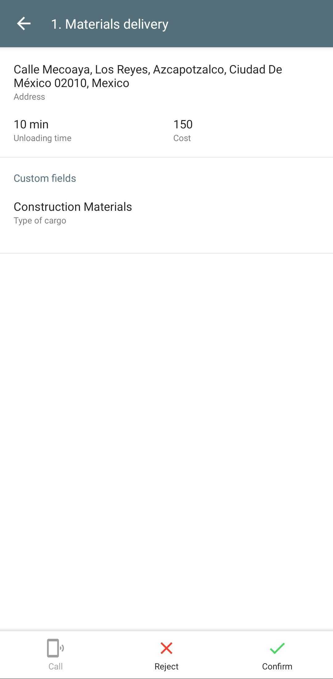 If you create a route with orders that have custom fields with an activated switch, then the corresponding fields and their values will be displayed in the mobile application in a separate block.