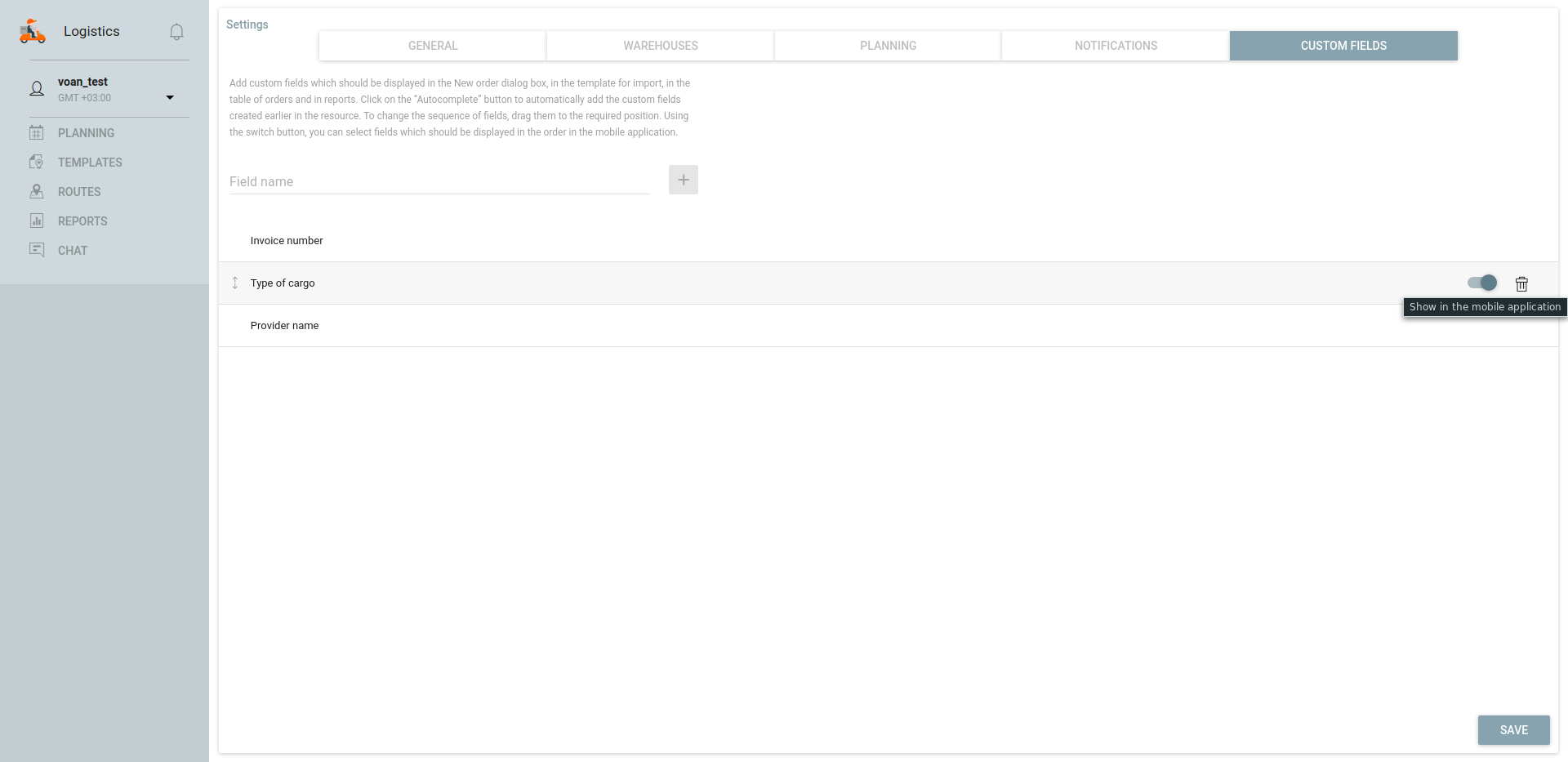 The user of Logistics Mobile will be able to see only the field that is activated in the settings, so you can choose what information can be displayed and what not.