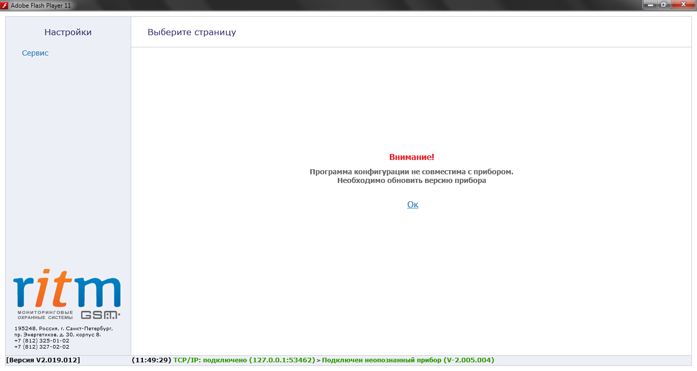 Конфигуратор RITM даже не дает подключиться (см. изображ. 1)