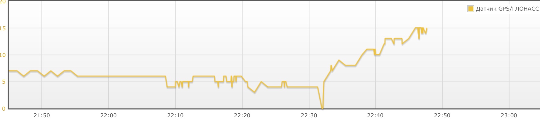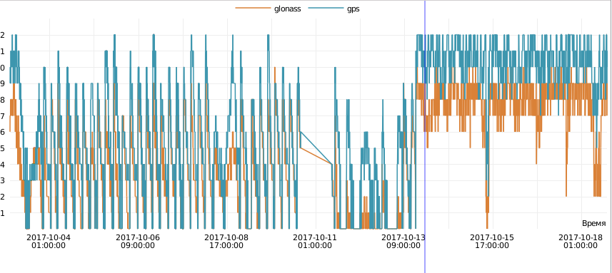 Результат - такой же, как и при обычном сбросе питания: резкое восстановление количества спутников с переходом на "пилу" по их количеству.
