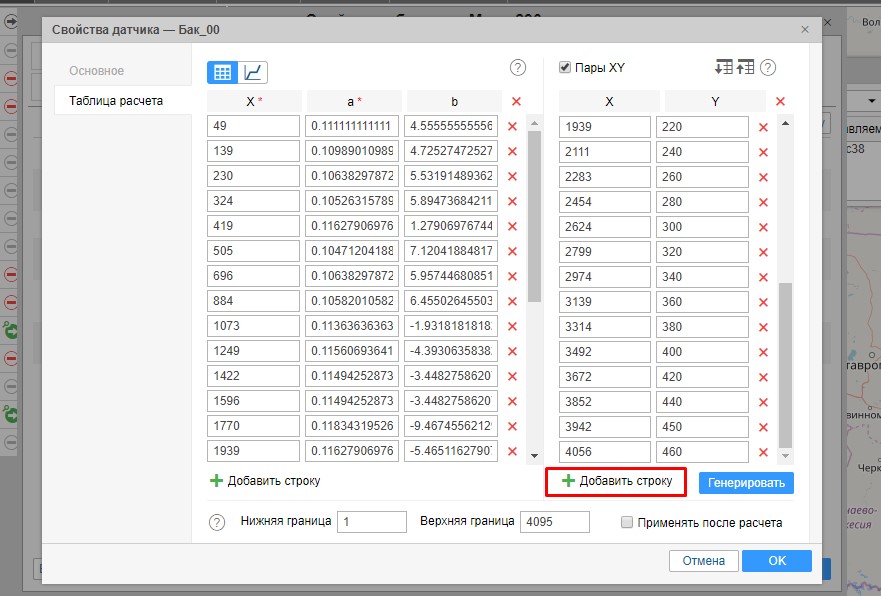 Нужна горячая клавиша для добавления строки в таблице расчета. Для чего? Когда вносишь тарировочную таблицу, то нужно пользоваться кнопкой "добавить строку", что не удобно. Сейчас этот процесс выглядит так: ввёл значение "X", нажал "Tab", ввёл "У", а вот сейчас нажать бы клавишу, ну например "Q" для добавления новой строки, но нет нужно использовать мышь для добавления новой строки. Да, и я знаю, что есть импорт/экспорт, но есть монтажники которые заполняют тарировочную таблицу только в бумажном виде.
