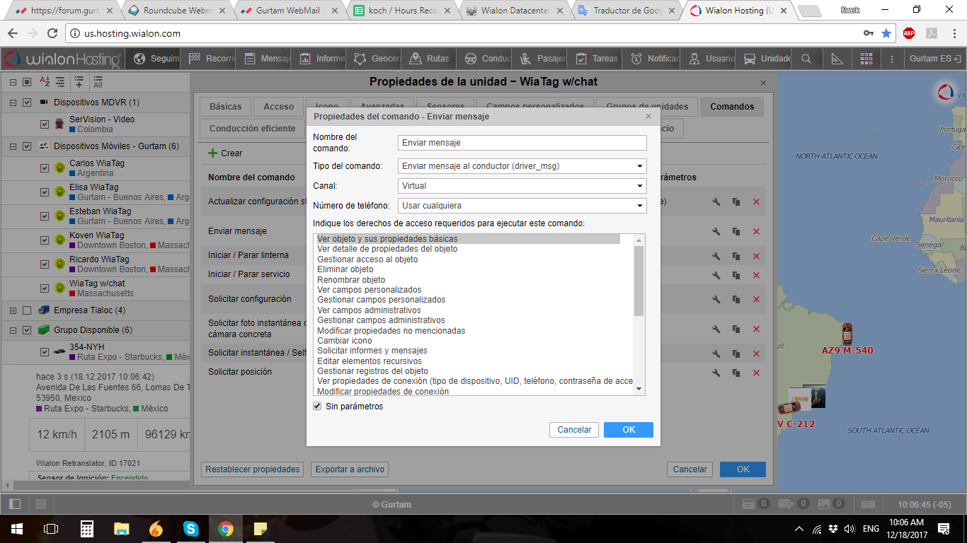 1. Creando el comando tipo "Enviar mensaje al conductor" disponible en las propiedades de la unidad en la pestaña de comandos para los dispositivos tipo WiaTag. Dicho comando puede ser enviado desde la pestaña Seguimiento o cuando se genera la ventana de Comunicación con Conductor.