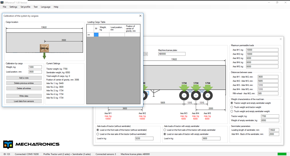 All calibrations, calculations are made by Eurosens Difference, so GPS tracker will receive ready data:  axle loads, cargo weight.