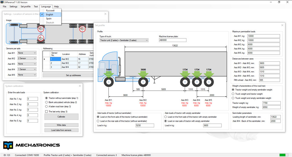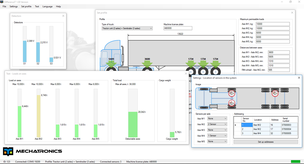 All calibrations, calculations are made by Eurosens Difference, so GPS tracker will receive ready data: axle loads, cargo weight.