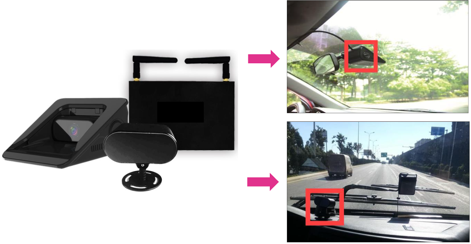 Dos cámaras están conectadas a una caja de control de IA. La cámara que mira hacia el frente del camino supervisa los eventos tales como el cruce de peatones, la distancia del vehículo que va adelante y la salida del carril sin el uso de señales.
