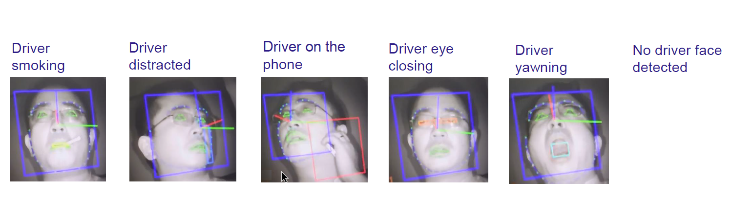 La cámara frontal al conductor supervisa la distracción del conductor, cuando esta fumando, usando el teléfono celular, cerrando los ojos, bostezando, etc.