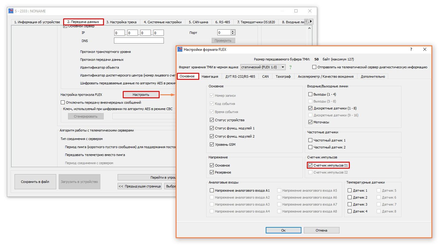 2.2. Настройте отправку параметра счетчика импульсов на сервер в настройках протокола FLEX
