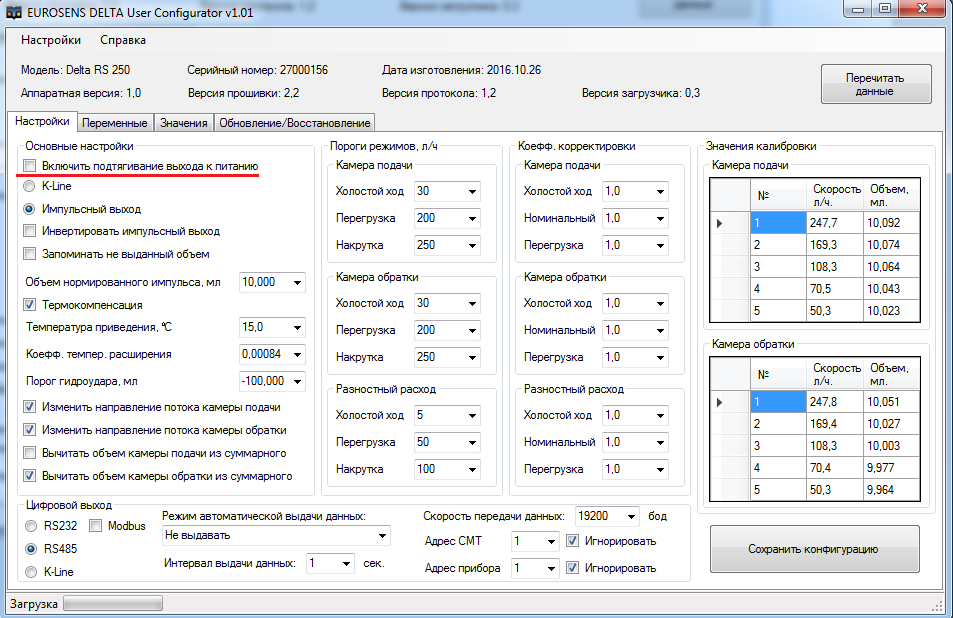 4. Пример настройки расходомера Eurosense