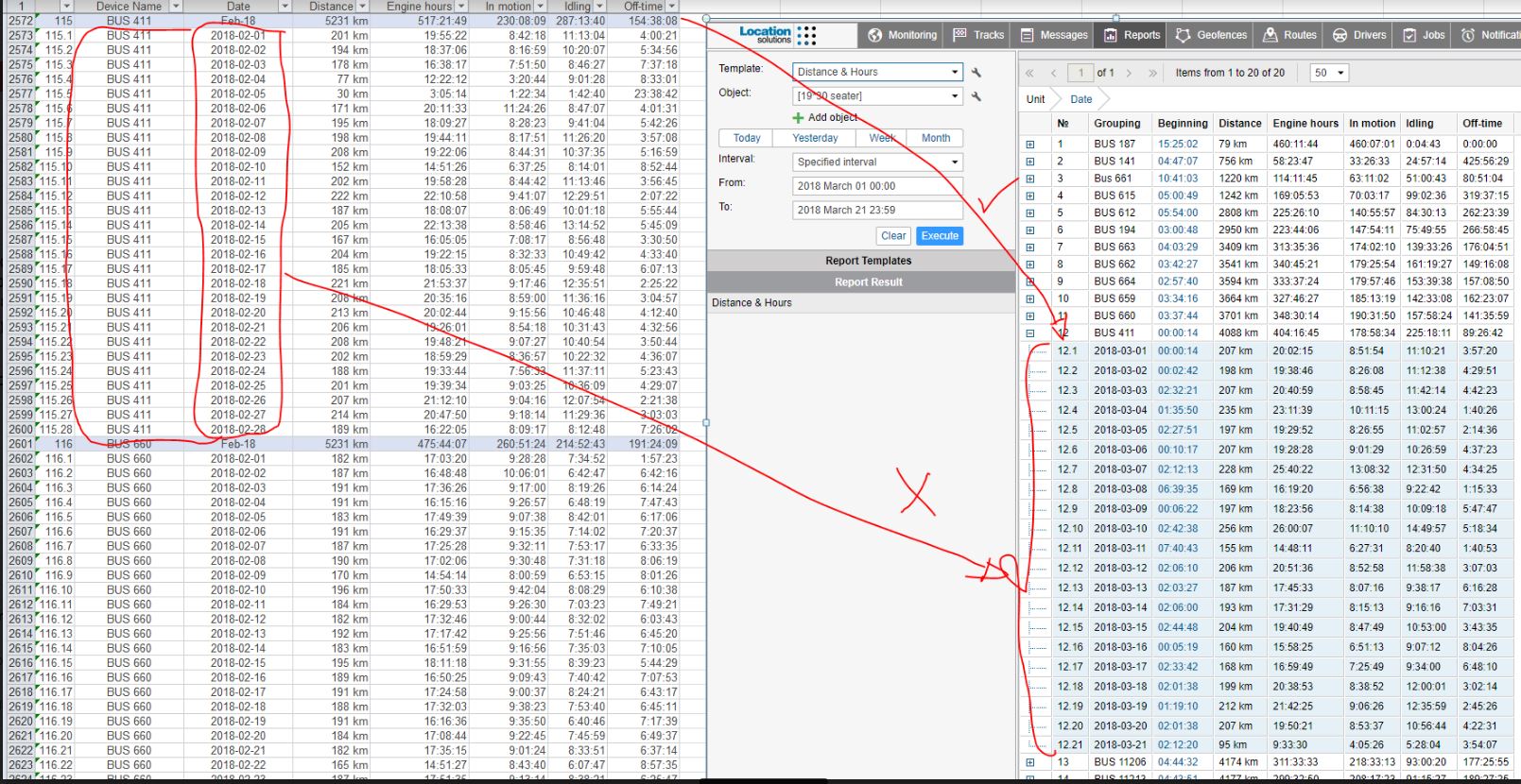 Or basically we can filter such day or days to understand the usage of vehicles. Please see the screenshot, the one on the left was the one I altered and the other one is the original from the reporting page.