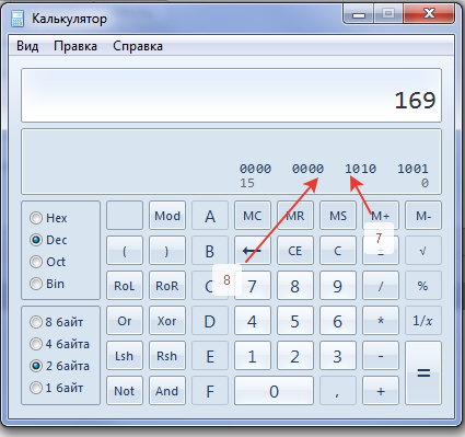 169 из десятичного переводим в двоичный вид ->1010 1001, т.е. включены справа-налево биты: 1, 4, 6, 8 если начинать отсчёт с 1-го бита. При расчёте от нулевого: 0, 3, 5, 7. В Wialon нумерация бит начинается с первого (т.е.  крайний правый бит это первый бит, нулевого не бывает)