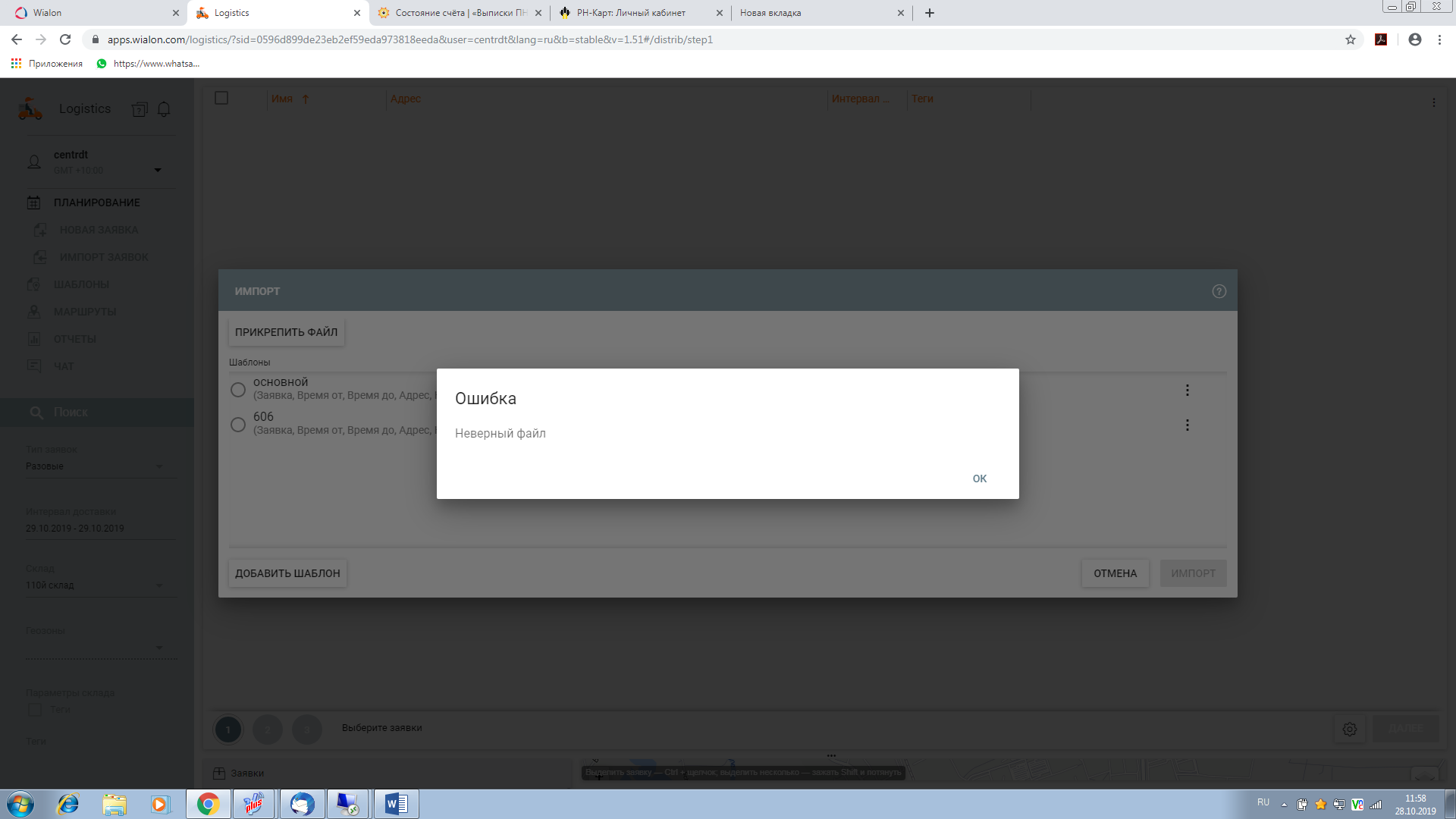 При импорте заявок в Logistics, появляется ошибка (во вложении). С чем может быть связана и как решить?