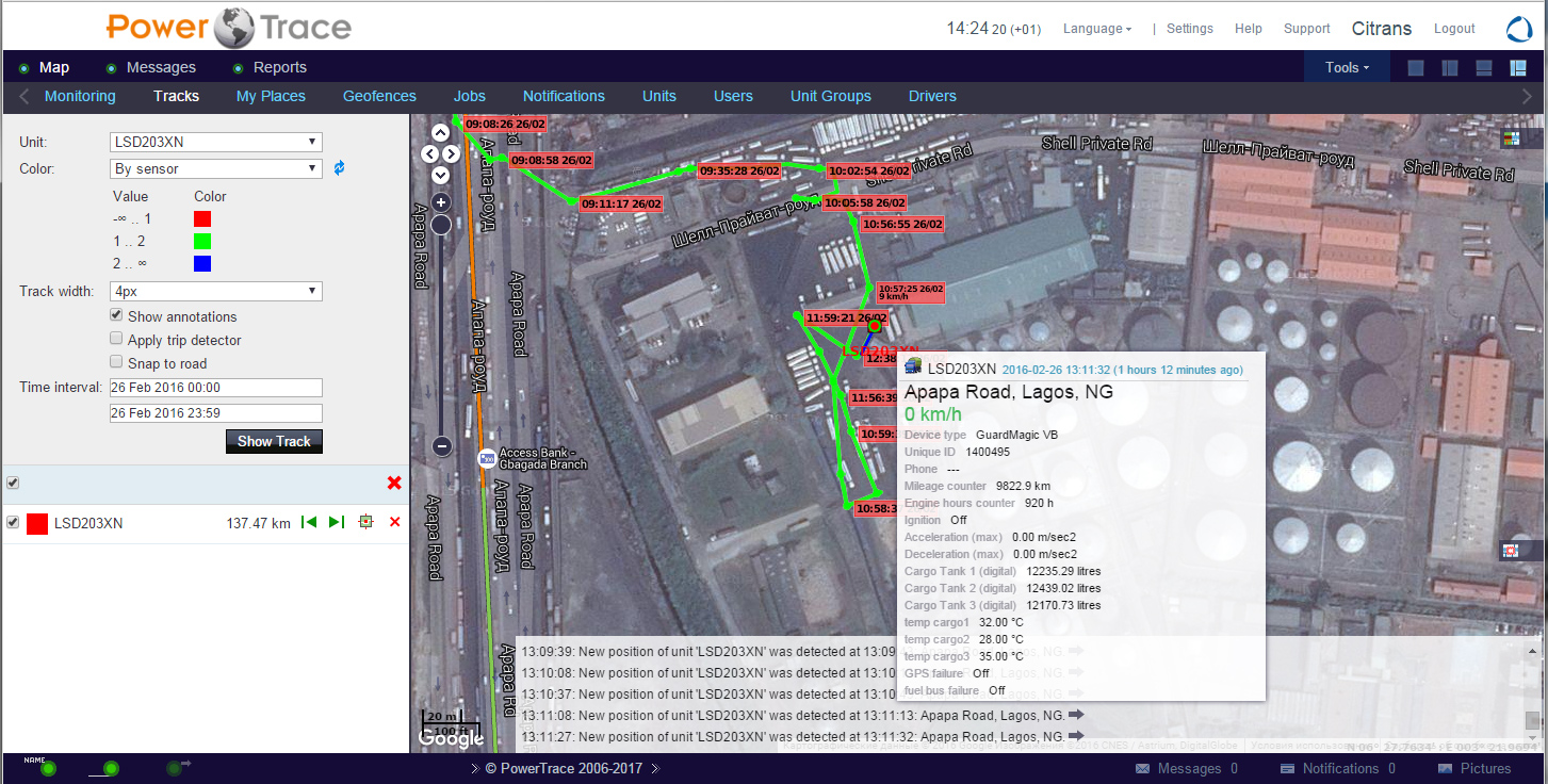 - Monitoring station (Wialon) , that storing received data from fuel tankers and analyzing received information.