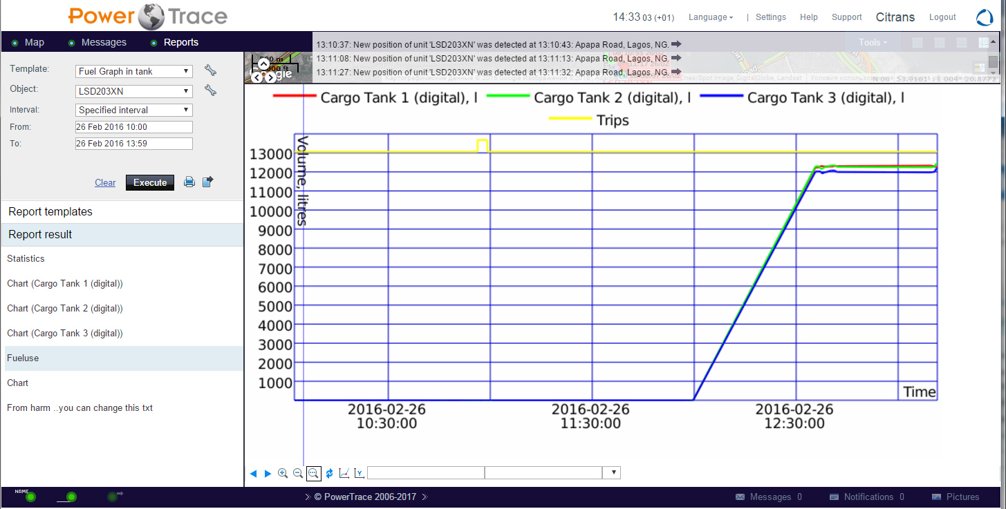 - all time has the real information about fuel level in fuel cargo tanks (fuel compartments);