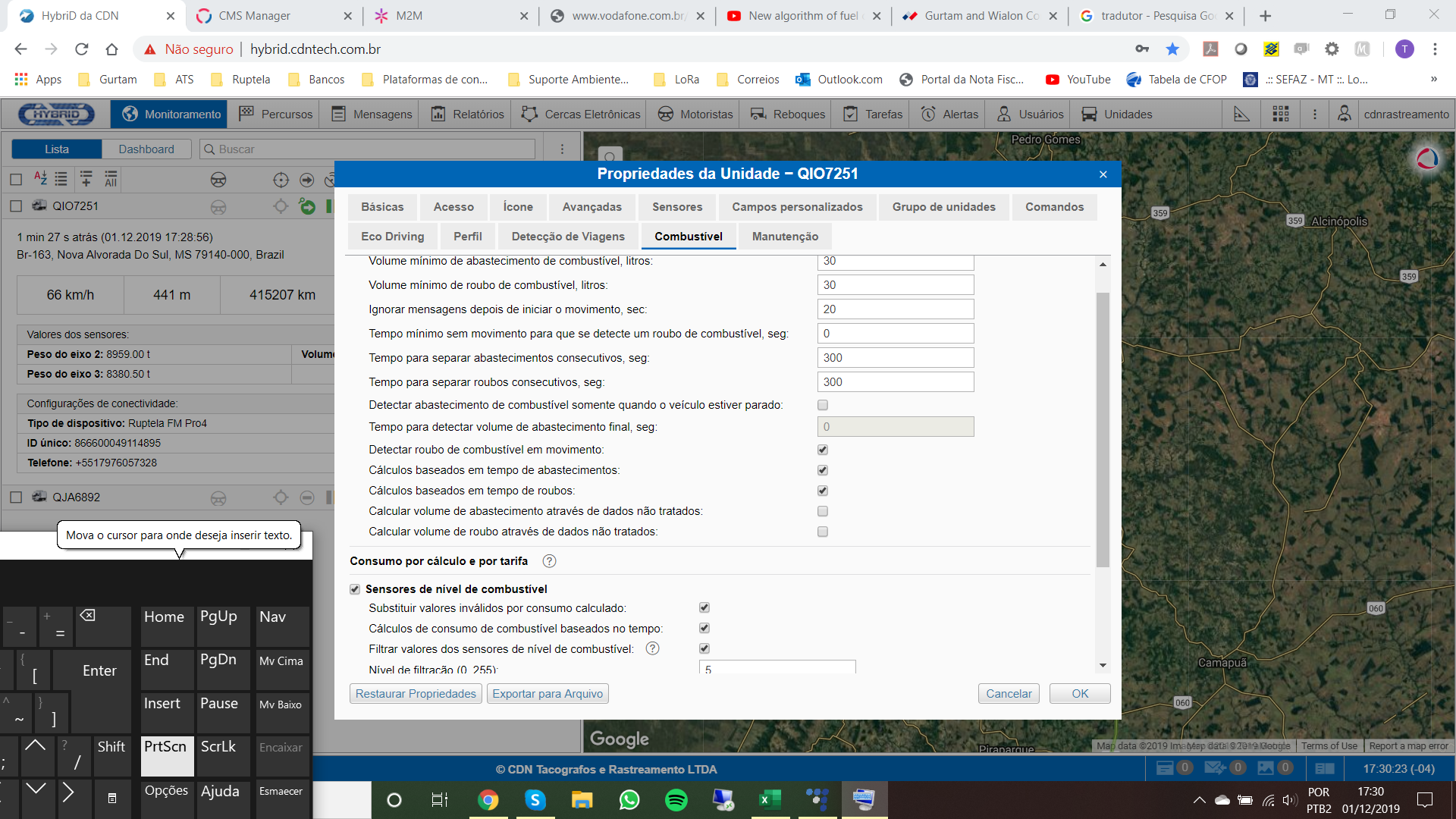 Also I recommend to add a lower bound into the calculation table of fuel level sensor "Volume de combustível". Sometimes it sends value "0" affecting report output. Just enter value "0.1" as a lower bound to filter zero values.
