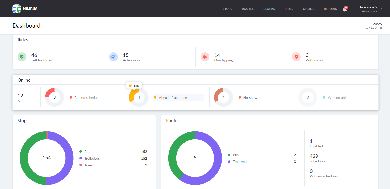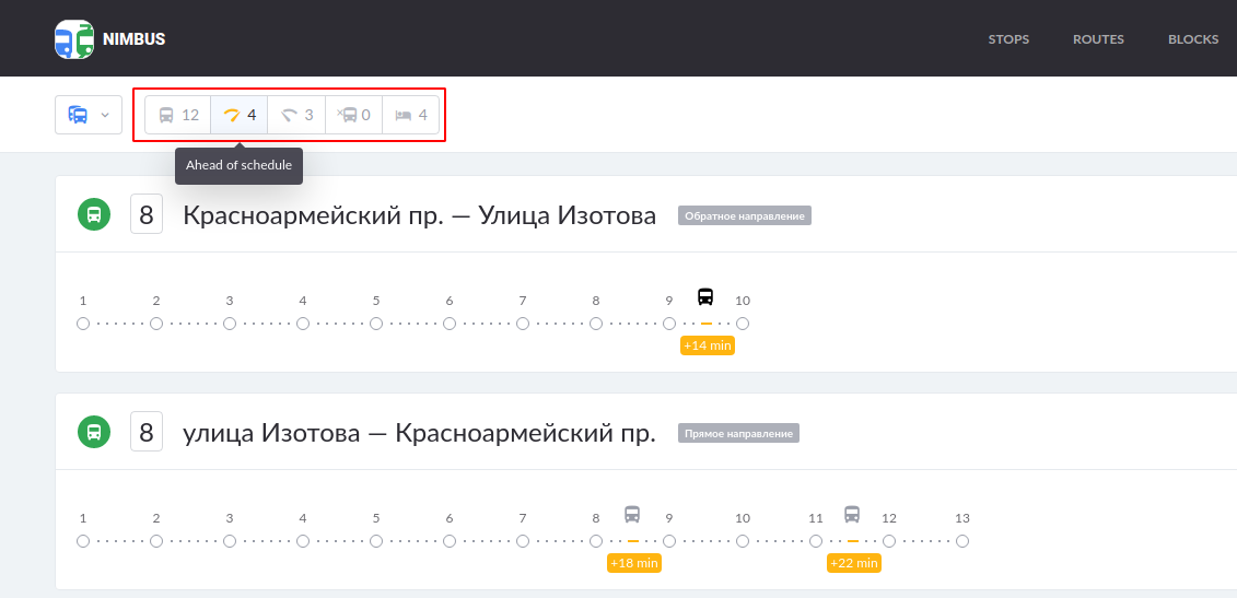 Previously a click on any of the blocks transferred you to the page that the block represented (rides, online, stops and routes).