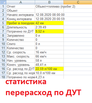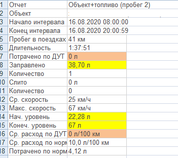 Проблема №1: расход по ДУТ равен нулю(в основном при сменах с небольшим пробегом). Такое наблюдается, если начальный уровень топлива меньше конечного в периоде отчета(такое достигается из-за скачков уровня топлива в баке). Как я думаю: начальный уровень 48.41 л, конечный уровень - 48.80 л. Получается по датчику получился отрицательный расход.