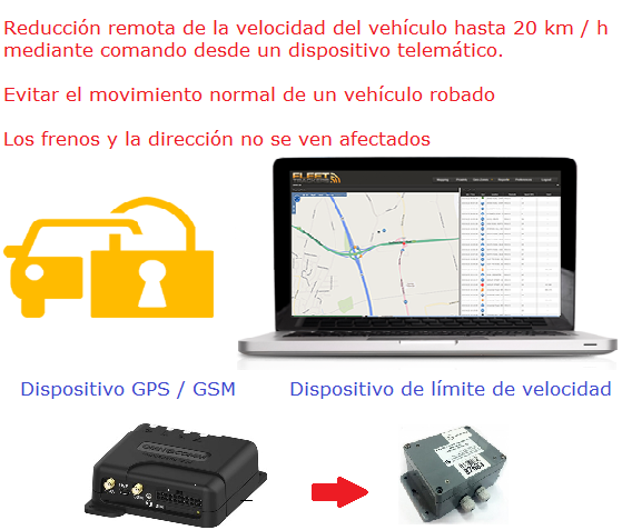 Inmovilización automática o remota de la velocidad del vehículo, o inmovilización (el motor no se apaga) de manera segura y efectiva por orden del dispositivo telemático GPS/GPS.