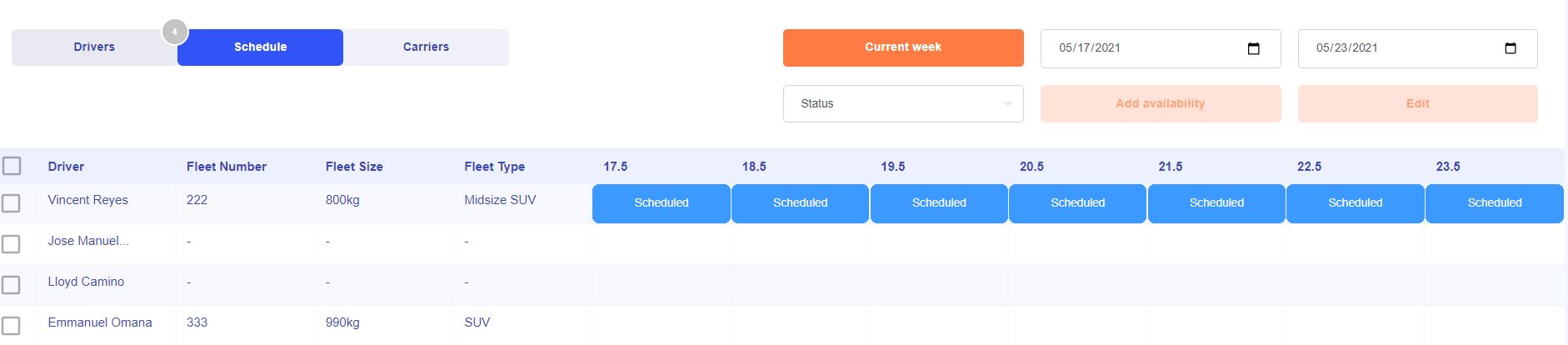 3. Would there be a way to put then the shift timings or availability of drivers and vehicles? Or is this considered for future developments? I have attached a screenshot from other platforms. This would be very useful if added