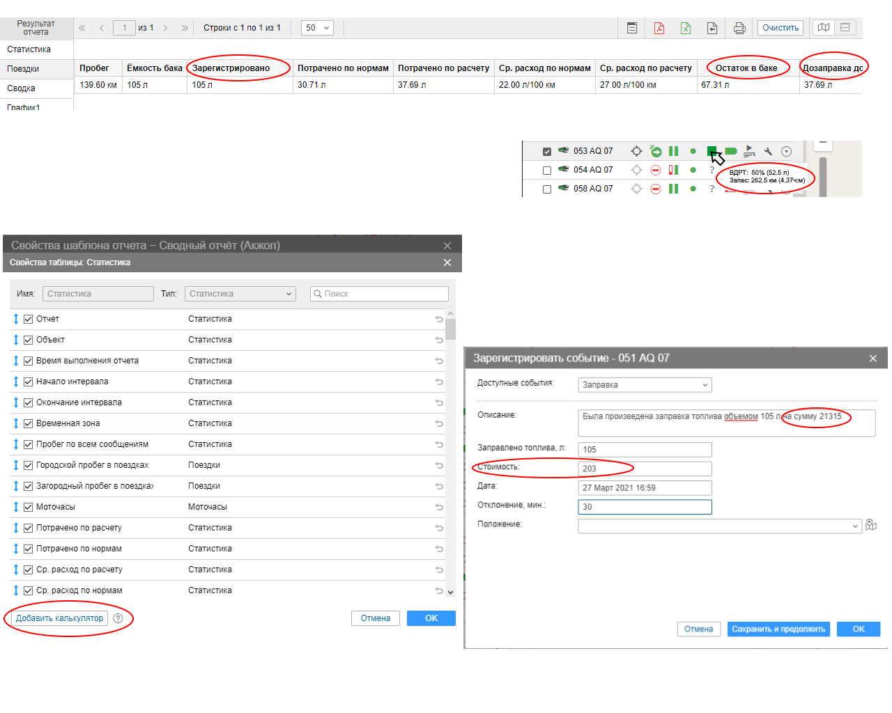 Можно ли в отчётах статистики или поездках, вывести информацию «остаток в баке» и «необходимо дозаправить?