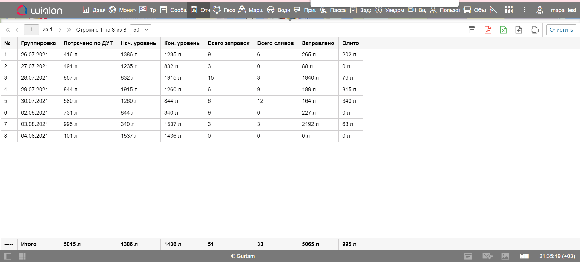 Topic: Остаток топлива в отчете