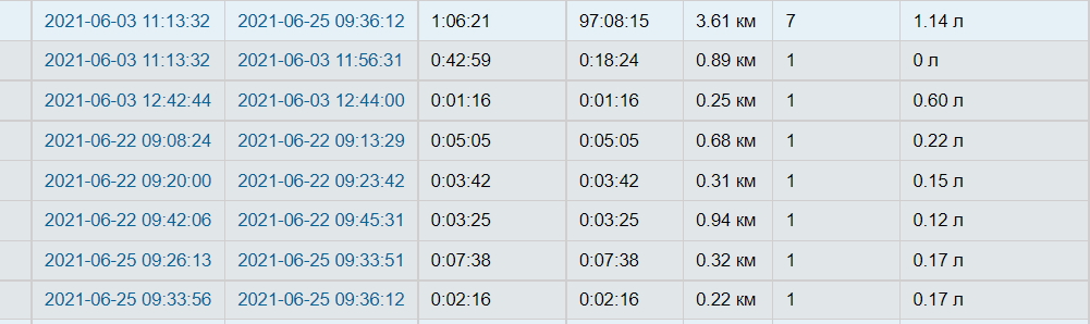 При группировке строк по объекту, каждое отдельное посещение считается корректно, а "Итого" считается не по сумме отдельных посещений, а так же по формуле "Конечные моточасы" -  "Начальные моточасы", при этом учитываются и моточасы вне геозоны.