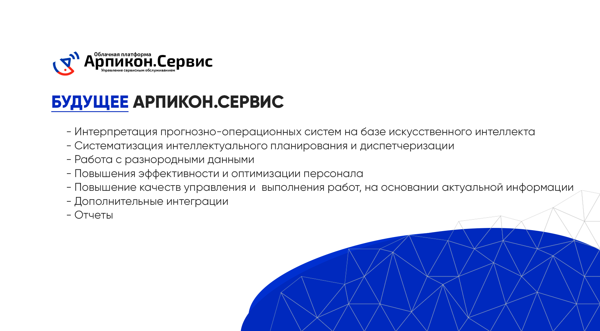 Будущее Арпикон.СервисАрпикон.Сервис - платформа сервисного обслуживания