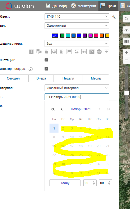 Сегодня 30 ноября, но в выпадающем списке дату позже первого ноября я выбрать не могу, они неактивны, см. рис. ниже. И если нажать кнопку "Сегодня" выбирает дату 01.11.21.