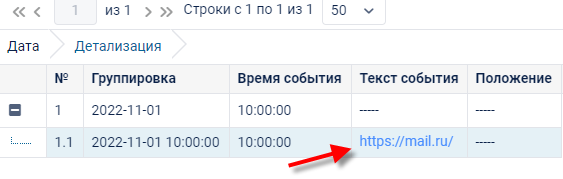 В отчете, в поле Текст события будет ссылка, на которую можно щелкнуть и открыть внешний сайт.