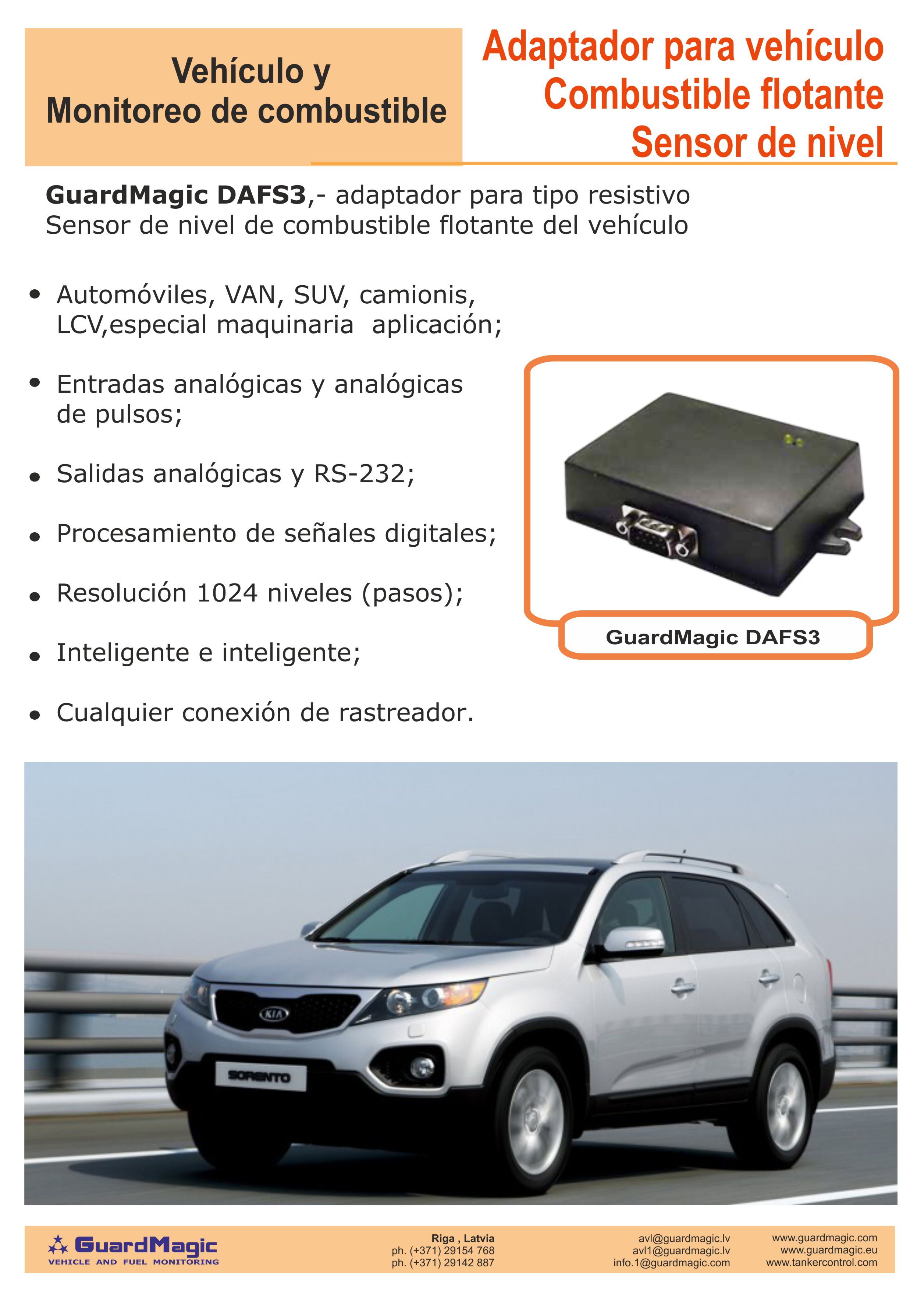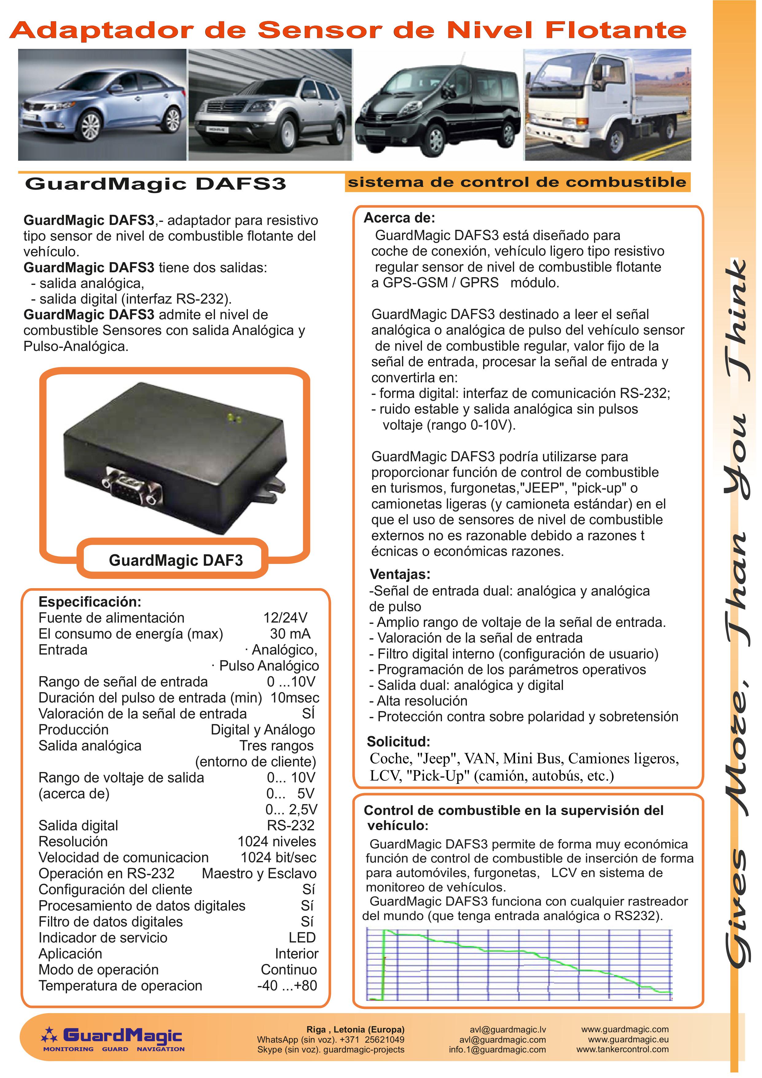 GuardMagic DAFS3 permite integrar de forma muy económica la función de control de combustible para automóviles, furgonetas y vehículos comerciales ligeros en el sistema de control de vehículos.