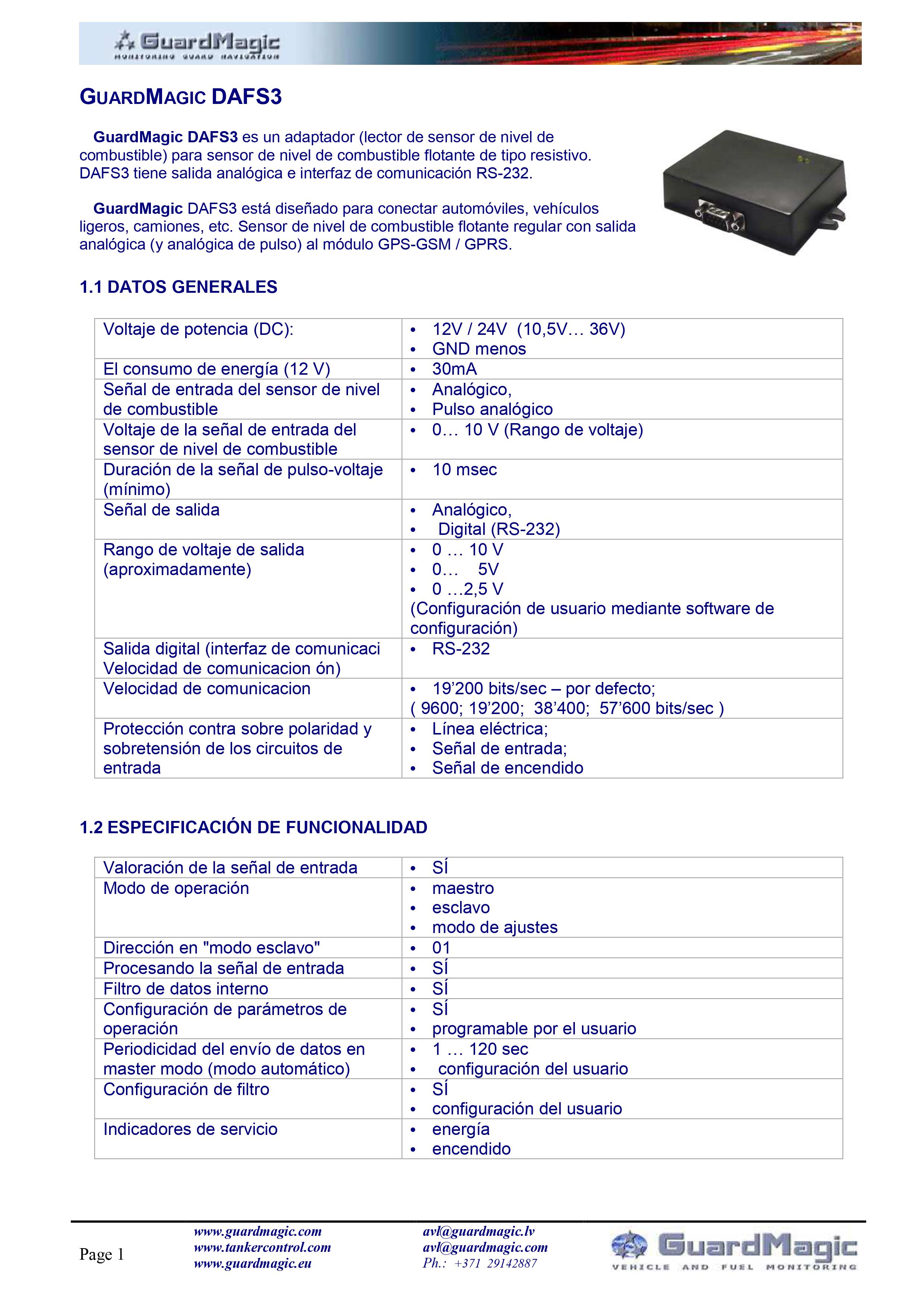 GuardMagic DAFS3 está diseñado para la conexión del sensor de nivel de combustible flotante regular de automóviles y vehículos ligeros al módulo GPS-GSM/GPRS.