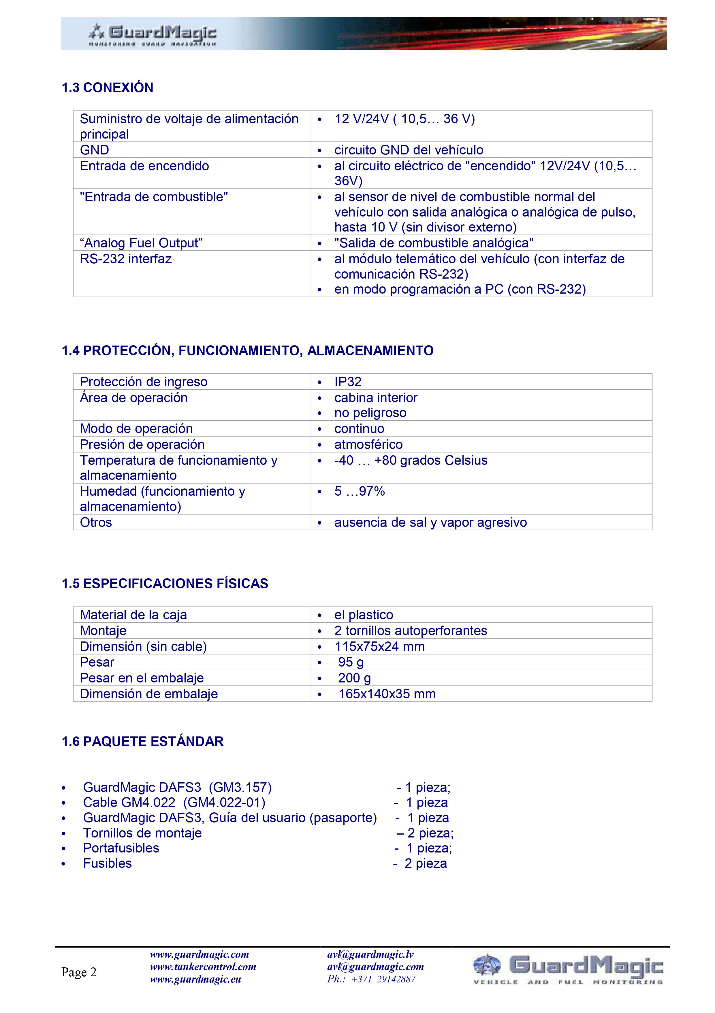 GuardMagic DAFS3 podría usarse para proporcionar la función de monitoreo de combustible en automóviles de pasajeros, "JEEP", VAN, "pick-up", LCV (vehículos comerciales ligeros), camiones, autobuses, etc. en los que el uso de sensores de nivel de combustible profesionales no es razonable. por razones técnicas o económicas.