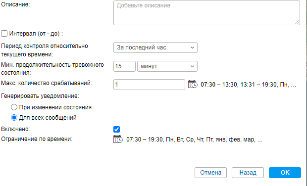 Мне нужно создать уведомления, которые отвечают следующим требованиям: есть группы машин (от 20 до 30 шт.). Для каждой группы авто должно срабатывать уведомление, если температура в рефрижераторе вышла за конкретные пределы и находится за пределами более 15 минут.