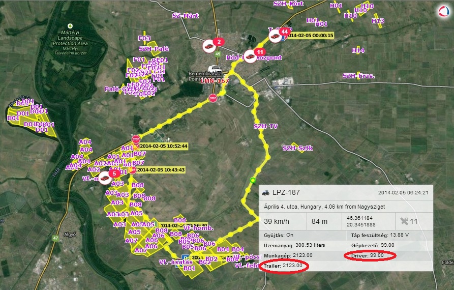 In the tracks tooltip (if we click on the units trip line) there are only the codes for drivers and trailers without any identification. It would be great if there should be shown the driver's and trailer's name. This function would be very useful if you are checking more then one vehicles data, or just want to find out whom was driving the car at that place.