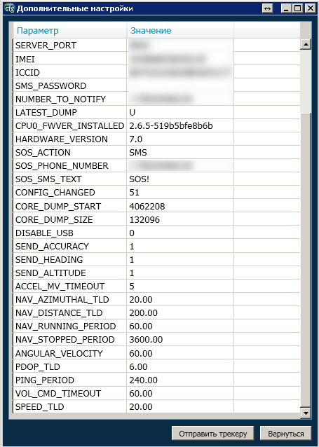 [13.01.2015 11:44:17] Служба поддержки cGuard: параметр ANGULAR_VELOCITY (фильтр по угловому ускорению) по дефолту принимает значение 0, и для легковых автомобилей, седельных тягочей, передвигающихся без прицепов и т.п. мы категорически советуем не менять его. для длинномеров (тягачи с прицепами, автобусы и т.п.) и трекеров на прицепах мы рекомендуем установить значение 60. внимание!!! значения пар-тра ANGULAR_VELOCITY менее 45 или более 70 убивают достоверность трека напрочь!!! поэтому рекомендую устанавливать 0 для коротких, 60 для длинномеров и не экспериментировать с другими значениями.