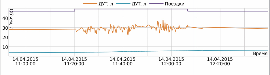 Как видим график за неделю выглядит адекватным, но вовремя поездок уровень топлива почти не изменяется(или на оборот 340л/100км)